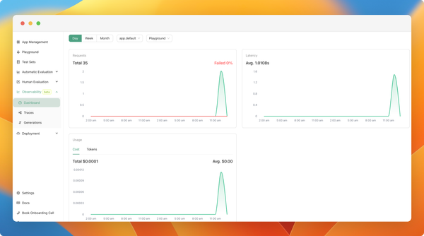• Monitor cost, latency, and the number of calls to your applications in real-time.
