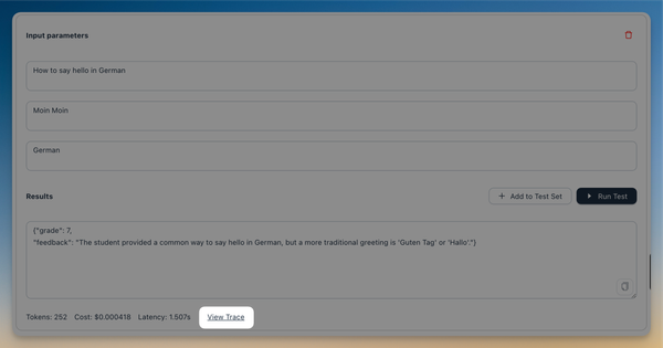 You can now view traces directly in the playground. This feature enables you to debug your application while configuring it—for example, by examining the prompts sent to the LLM or reviewing intermediate outputs.