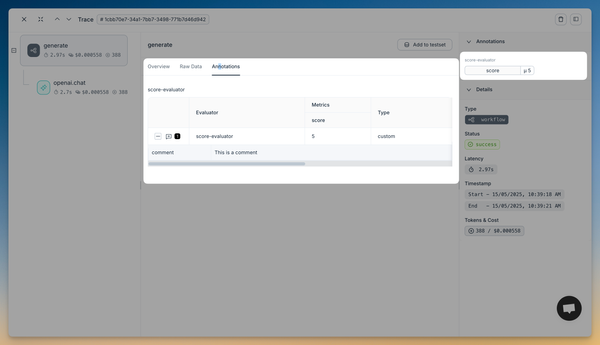 One of the major feature requests we had was the ability to capture user feedback and annotations (e.g. scores) to LLM responses traced in Agenta.
